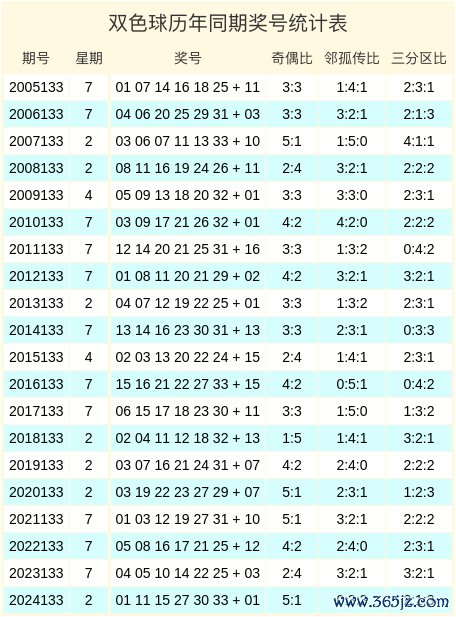 蓝球分析:积年同时中蓝球的大小比为11:9,本期展望开出大数蓝球号码:15。